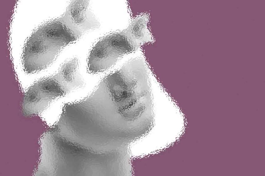 Abstract art, collage with female portrait and mountains, generative ai